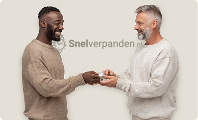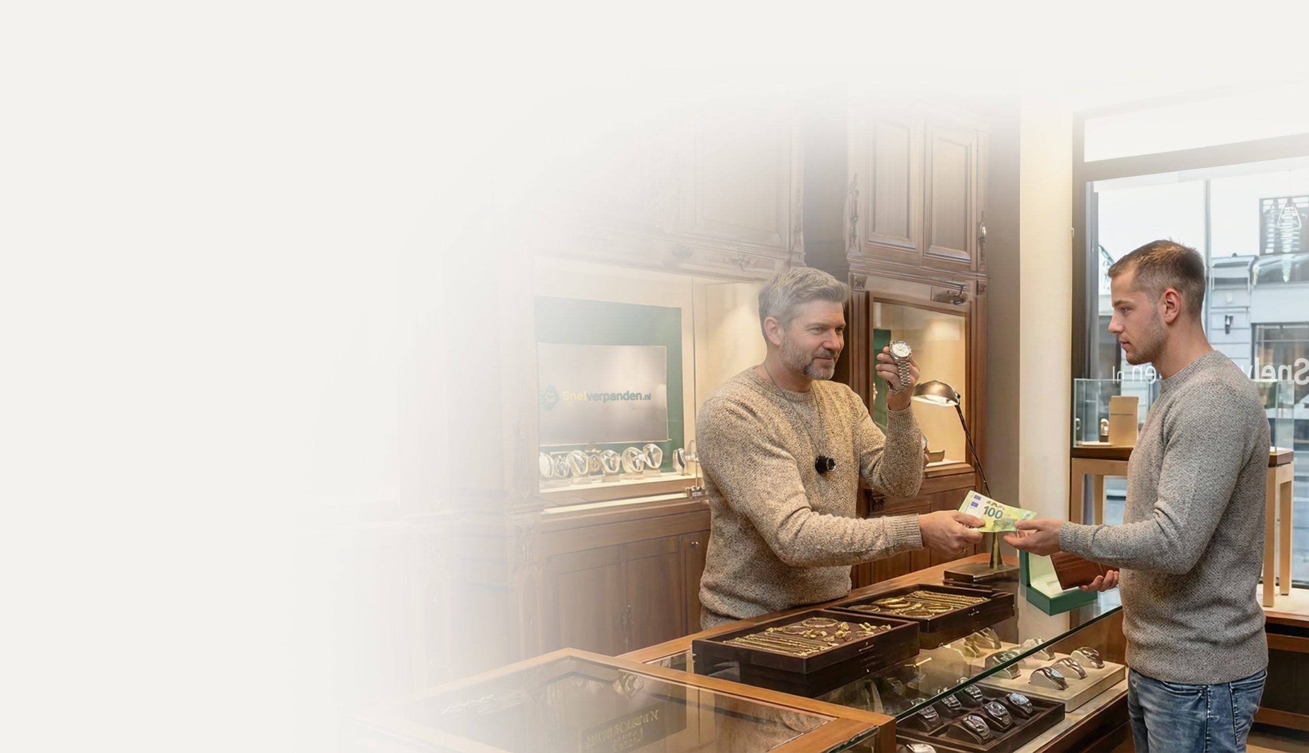 Een horloge verpanden betekent dat je tijdelijk een lening ontvangt met je luxe horloge als onderpand, terwijl het horloge jouw eigendom blijft. Je komt langs in ons pandjeshuis in Amsterdam, wij beoordelen direct de echtheid, het merk en de staat van je horloge en doen je een passend voorstel voor een lening met je horloge als onderpand. Ga je akkoord, dan krijg binnen 5 minuten het geld contant mee of storten we het voor je op je rekening. Het leenbedrag bedraagt maximaal 85% van de waarde van je horloge. Daarna blijft je horloge veilig en verzekerd bij ons opgeslagen totdat je het geleende bedrag en de rente volledig hebt terugbetaald.